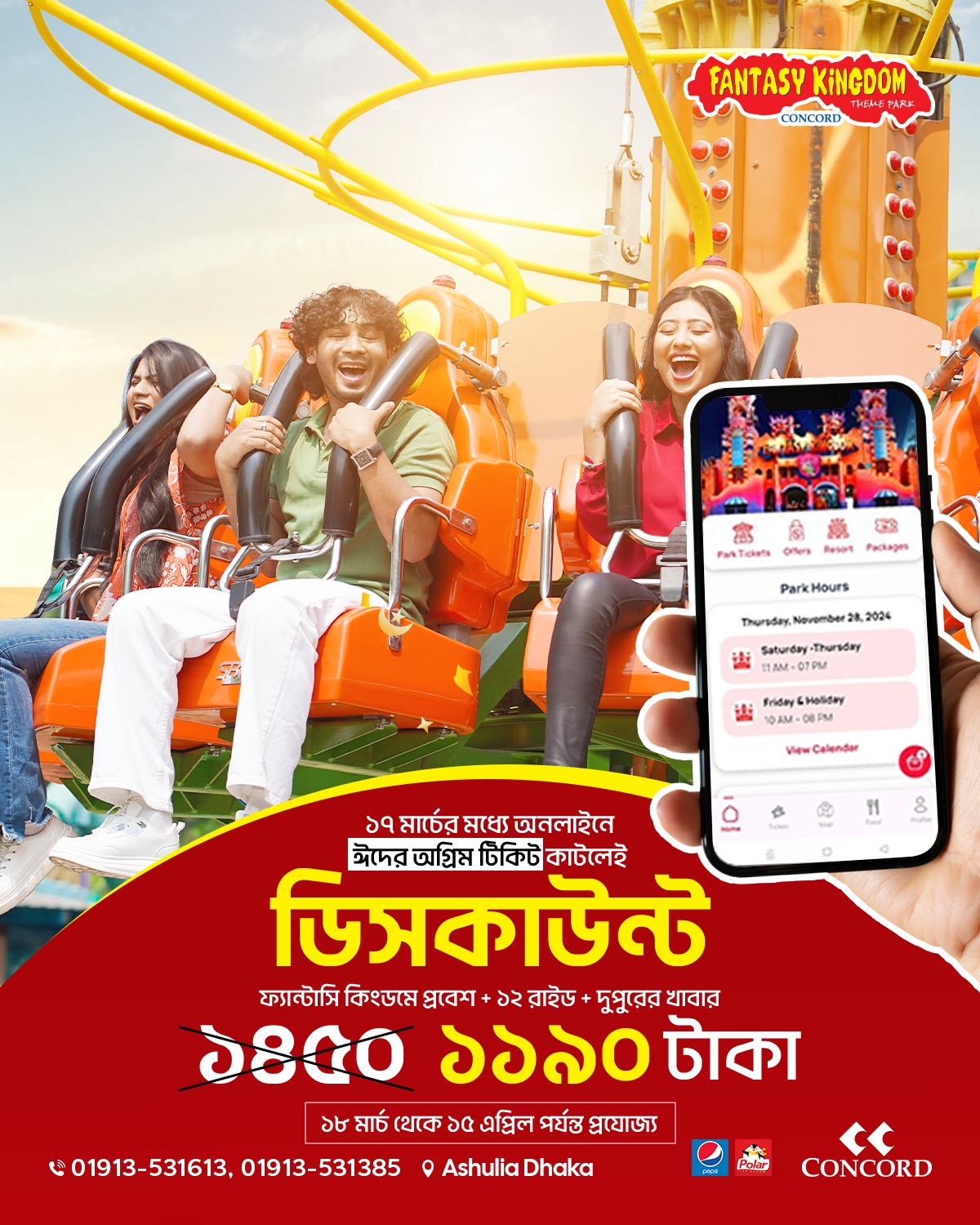 Eid Online Advance Ticket: Fantasy Kingdom entry + 12 Rides ones+ Lunch Ticket Details